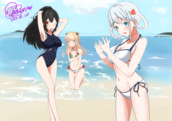 水着イラスト途中経過です。 会長もかなりかわいらしく描けた気がする。 #九條霞 #献條品 #月宮雫 #しずあーと