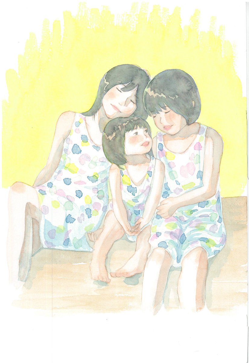 1 5 コンビニでスキャンしてきました。 家ではA4サイズまでしかできないので😊💦 後ろで待たれてる方にイラストが見られないかヒヤヒヤしました💦 #水彩画 #三姉妹 #何気ない日常をイラストに 21/06/25 14:57