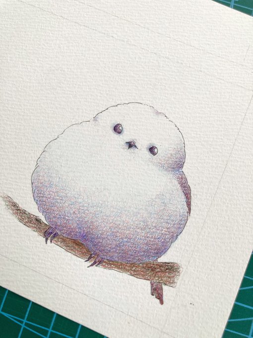 3 35 じっ👀 #色鉛筆 #色鉛筆イラスト #イラスト #シマエナガ 23/02/19 15:55