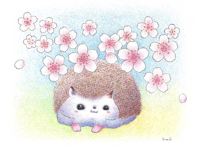 1 4 さくらの季節が恋しい🌸 #イラスト #色鉛筆 #色鉛筆イラスト #ハリネズミ 23/01/15 18:16