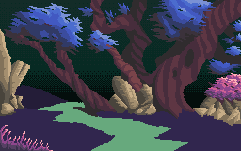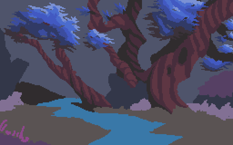 Day 6! I had a lot of work to do in my job this last couple of days so not much as been done to the WIP but I fixed some things and also rendered the rocks and the bush/grass a little bit :P #pixelart #pixelartist #artistsontwitter #aseprite #ドット絵