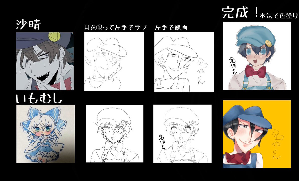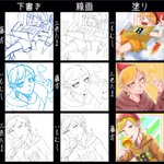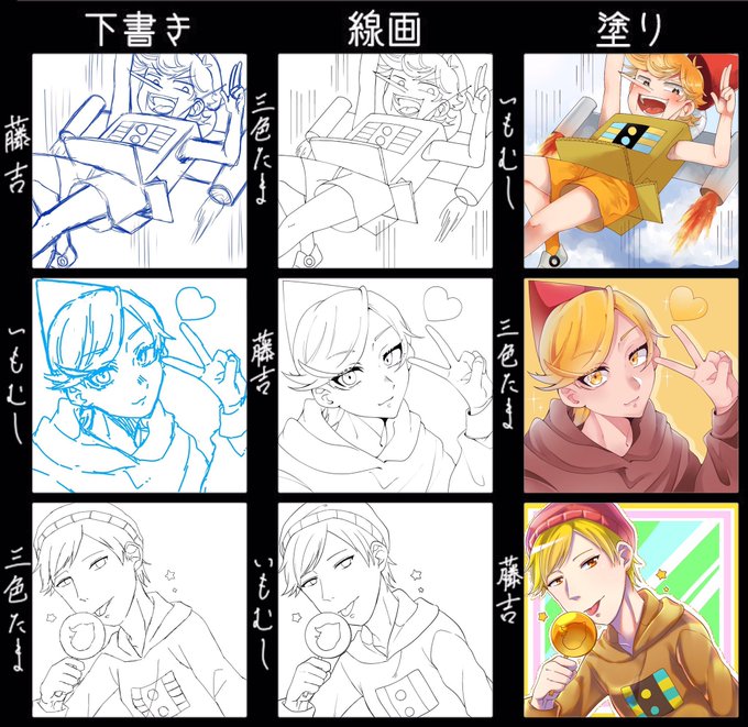 #3人で下書き線画塗りを交換して絵を完成させる 藤吉さん(@usarakatay1)と三色たまさん(@sansyoku_08 )と一緒にノキオ描きました☺️💗💗 とっても楽しかったです!!!みんな見てホラノキオ美しい!