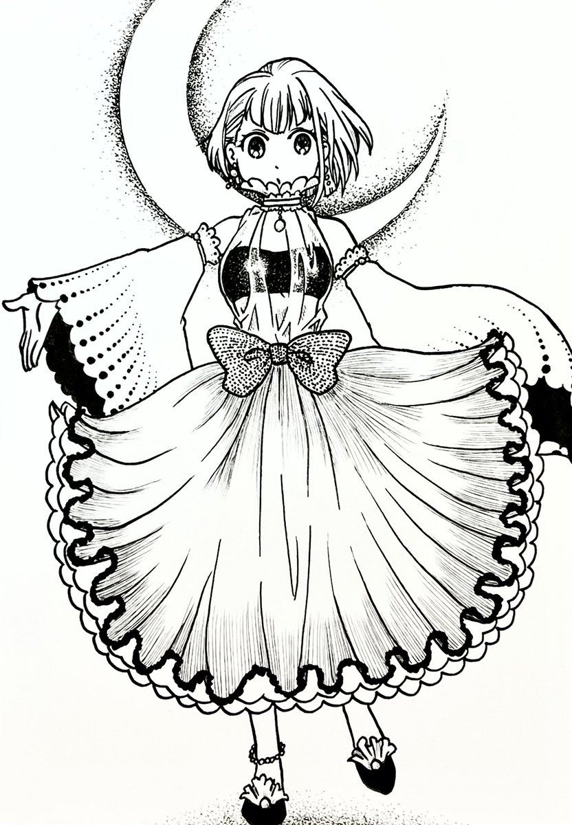 inktober 2022 04 SCALLOP ホタテ貝のヒダがドレスになっても可愛いよなと思ったんですが…ぅーん。 #Inktober #inktober2022 #inktober2022day4 #scallop