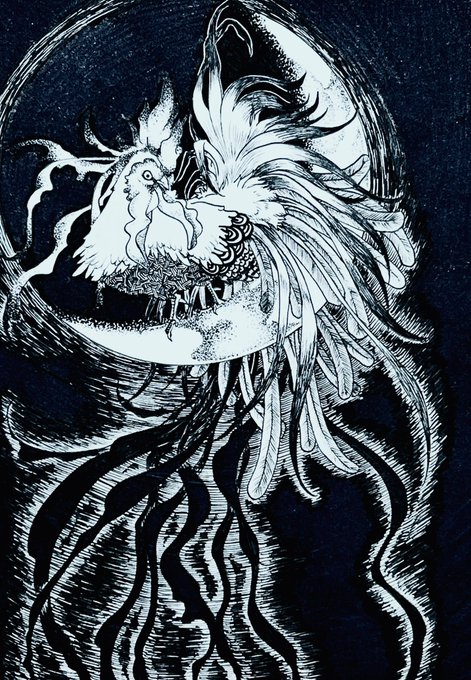 inktober 2022 16 FOWL 家畜の鳥 #inktober #inktober2022 #inktober2022day16 #fowl #ニワトリ #オナガドリ うゎん、真っ黒にしすぎた! でもニワトリ楽しい!! ニワトリの尾羽の無重力感、可愛いない?笑
