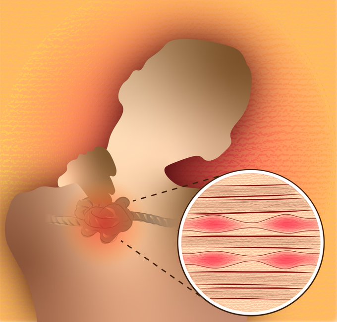 For #Inktober Day 4, the theme is “knot.” It’s fitting that @catienewsoms illustrated a muscle knot, since the Nobel Prize in Medicine was awarded for temperature and touch sensation that day! Now where is my IcyHot… #inktober2021 #GraphicDesign