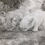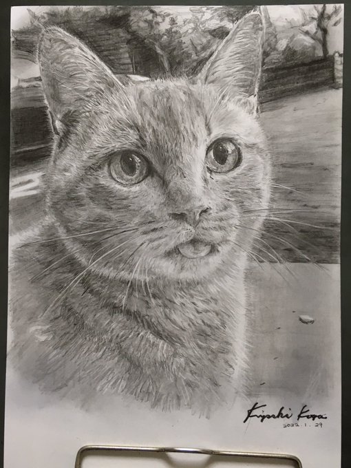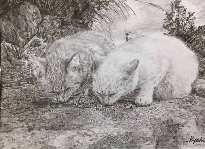 完成しました☺️ チビ🐈母親🐈まるどら🐈 #鉛筆画 #Pencildrawing #pencilart #STAEDTLER #フリーハンド #猫好きさんと繋がりたい #絵描きさんと繫がりたい #A4 #熊本