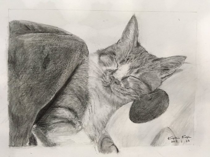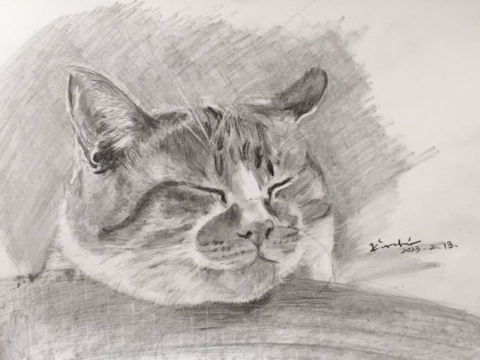 ととちゃん🐈 今回2回目の挑戦です_φ(・ω・`) #鉛筆画 #pencilsketch #pencildrawing #staedtler #cat #ととちゃん #キャッツ #CatsOfTwitter #絵描きさんと繋がりたい #Kumamoto #Fukushima #平和な世界を