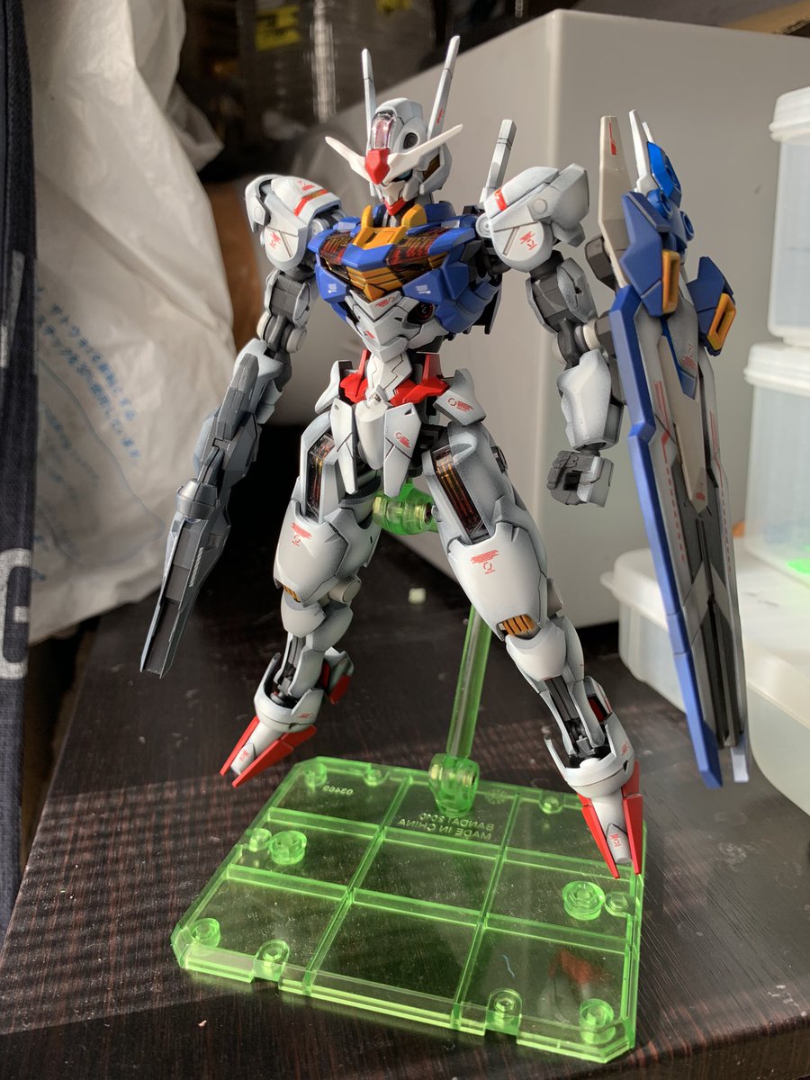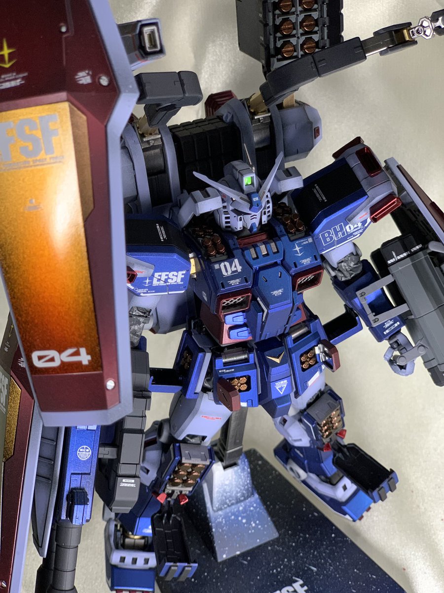 シールドもそうですけど武装が多いので隠れてしまう部分が多いんですが むしろそこに一手間かけて情報量を上げるのも乙な事ですよね 台座はおまけですけどこれも含めて一つの作品です #ガンプラ #ガンプラの画像貼るとRTされると聞いて #ガンプラ好きな人たちと繋がりたい