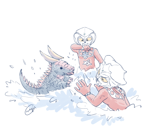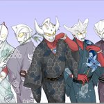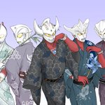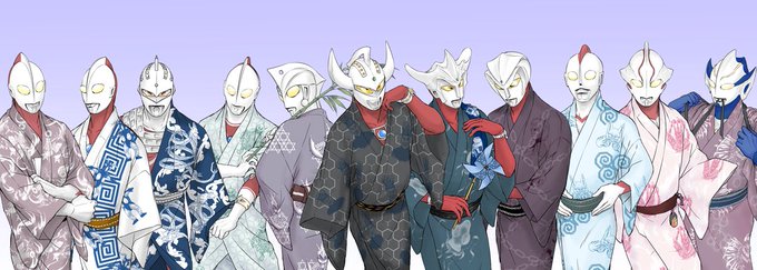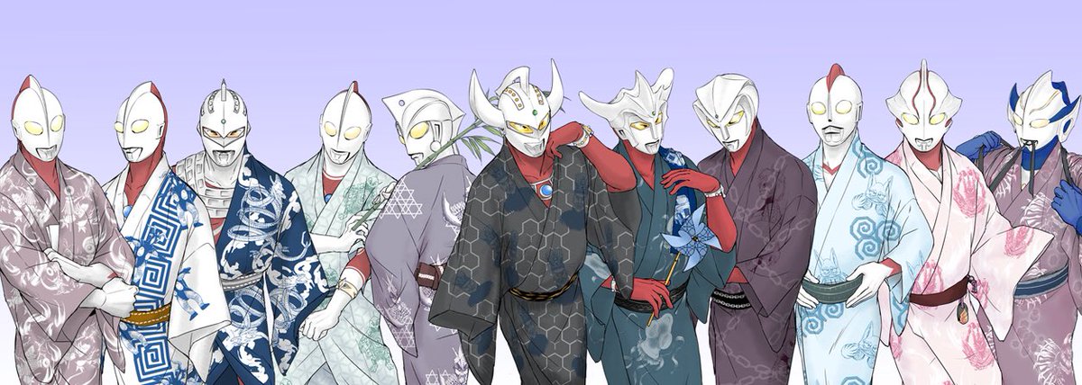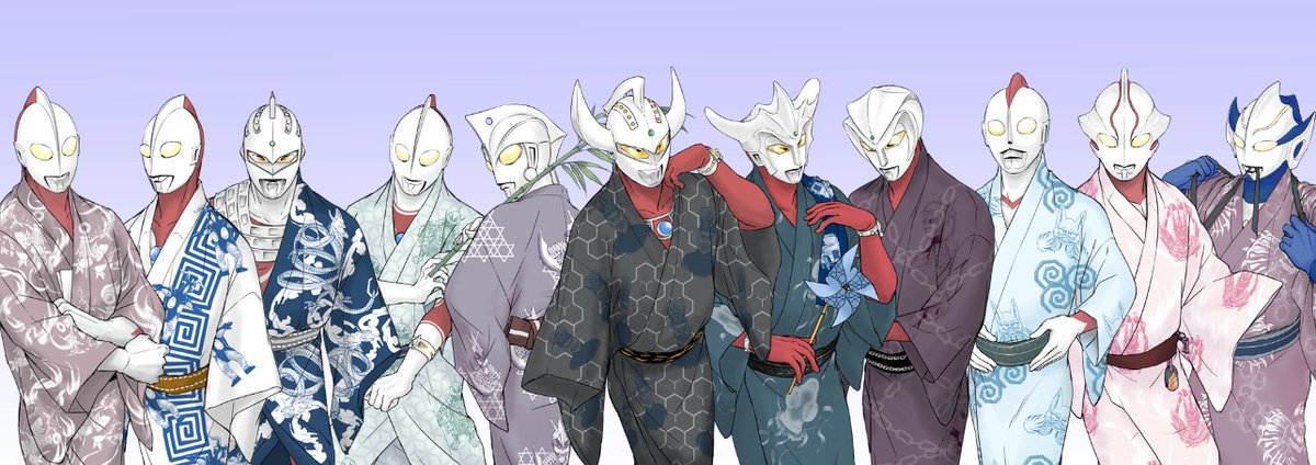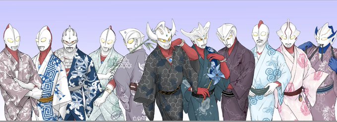 #軽い気持ちで描いたら思った以上に反響があった絵 浴衣姿のウルトラ11兄弟です 浴衣の柄が苦戦した怪獣や宿敵になってます〜