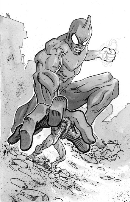 FIGHTOBER - 14 - THE THING vs MURDER FALCON #fightober #inktober2022 #thething #murderfalcon #comics #drawing #sketch
