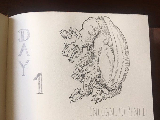 Going to attempt #inktober again. Day 1: Gargoyle #inktober2022