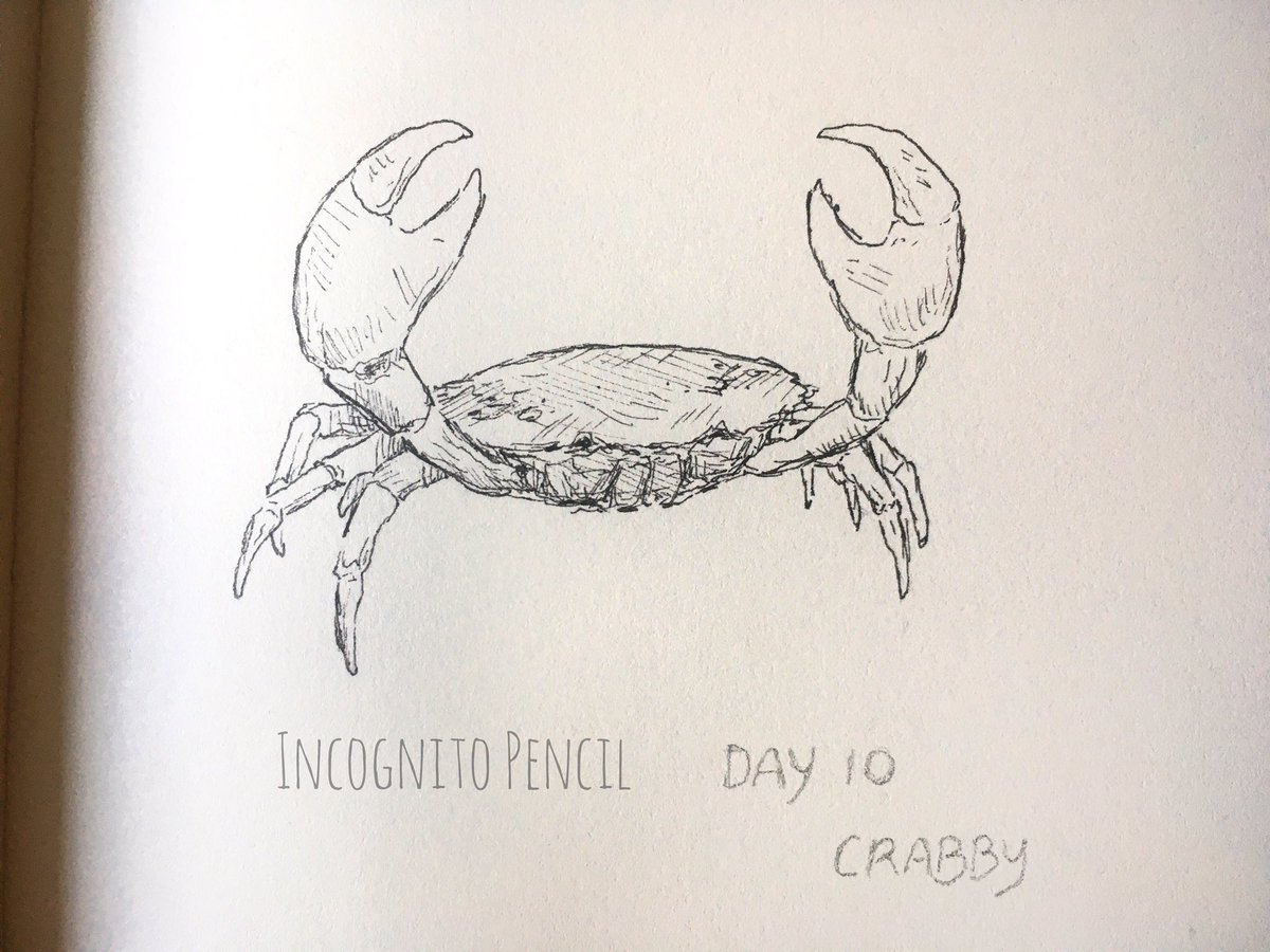 Day 7 (trip), 8 (match), 9 (nest), and 10 (crabby). #Inktober #inktober2022