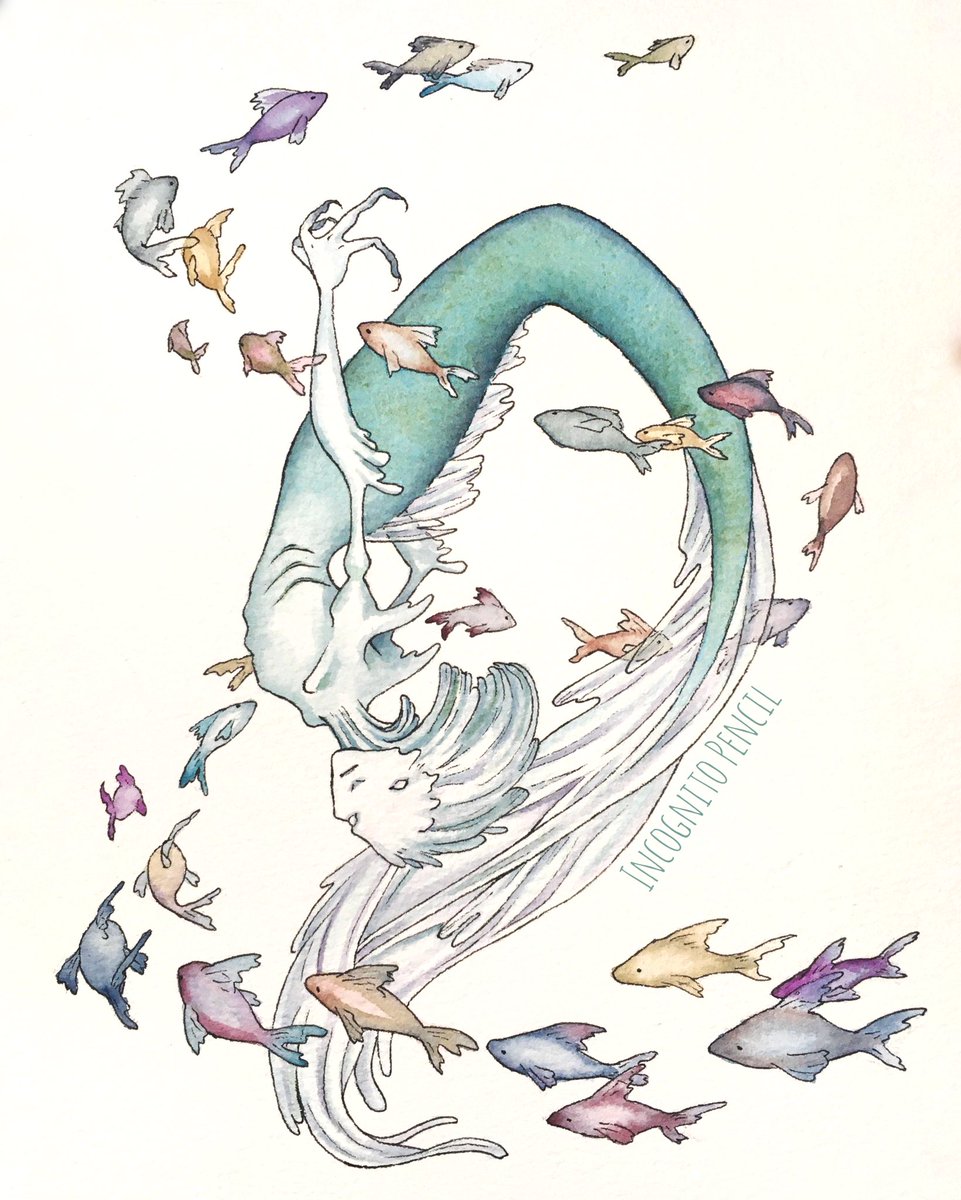 Mermay day 2: upside down. #mermay #mermay2023 #mermaid #watercolor