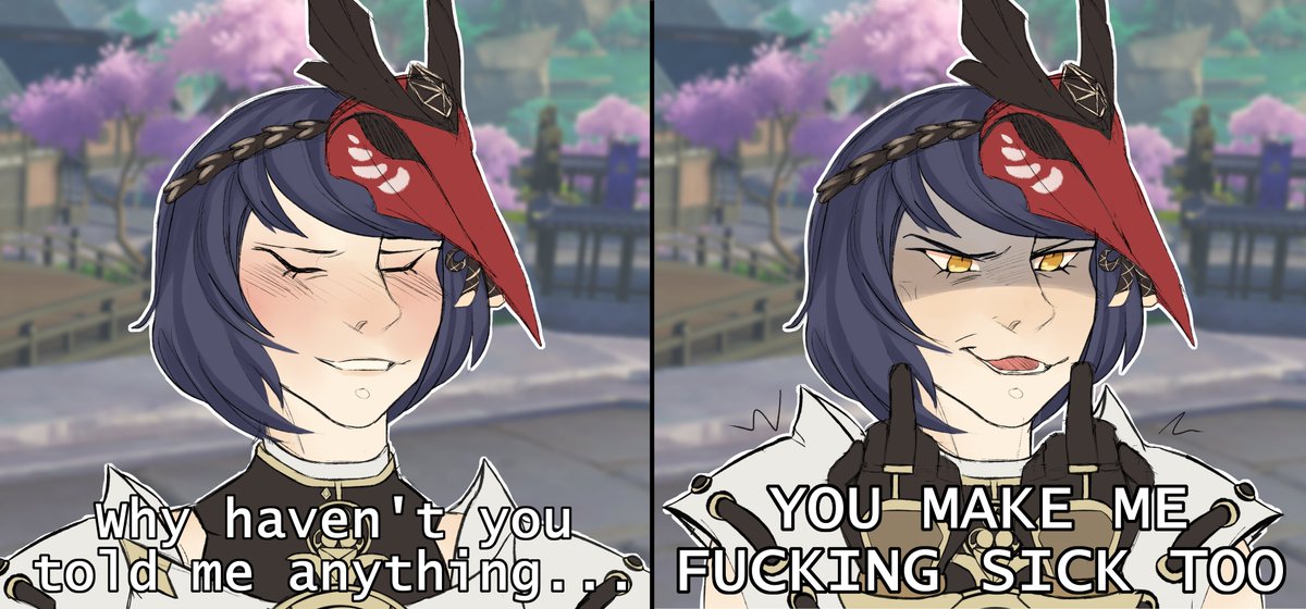 I didn't know Twitter can contain only four pictures so I had to glue the last two... Anyways this is how true love looks like :D #GenshinImpact #genshinimpactfanart #Genshin #ittosara #ittoarataki #aratakiitto #saraitto #sarakujou #kujousara