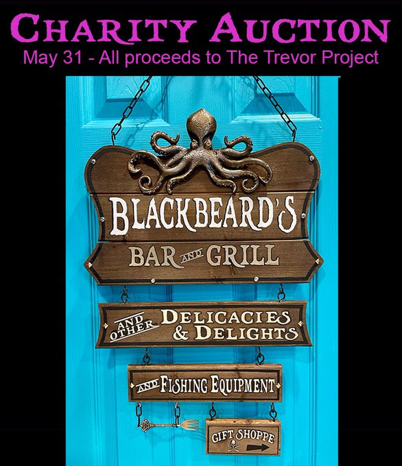 The auction for this sign is now LIVE! 🏴☠️🐙🍴 100% of the sale price will be donated to The @TrevorProject 🏳️🌈 Bidding will remain open through June 4! See this 🧵thread for auction link and other details 🏴☠️ #OurFlagMeansDeath#ourflagmeansdeathfanart#ofmd#fabulousbooty