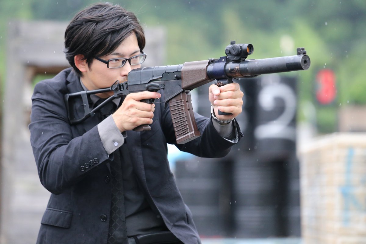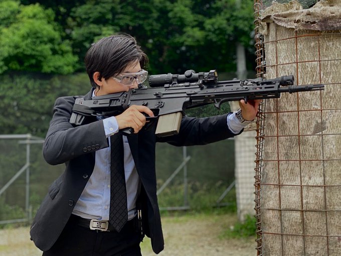#サバゲーマーがイラスト化してもいい画像くれる スーツと銃の資料にいかがですか…