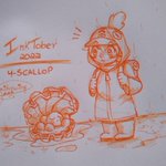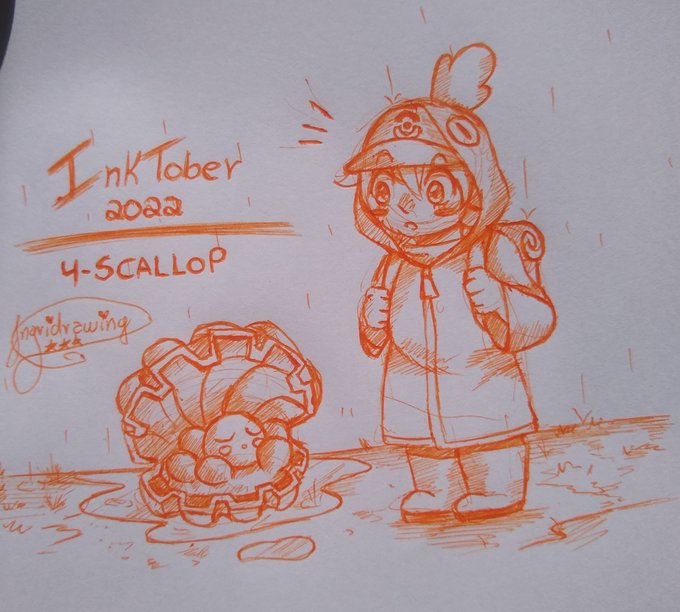O tema de hoje foi vieira traduzindo para pt, As vieiras são moluscos e a primeira coisa que veio em mente foi desenhar algum pokemon ostra kkk ficou meio torto a cocha mas esse é o desafio, e fiquei sem caneta preta então tá laranja kkkk #inktober2022 #Inktober #inktober2022day4