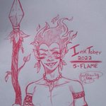 O tema de hoje foi chama, eu pensei pq não fazer um curupira? Eu acho que exagerei um pouco na aparência dele mas eu gostei bastante KKKKK, e tmb tive que fazer um rolê para ajeitar a lança como pude. #Inktober #inktober2022 #inktober2022day5 #inktoberday5flame