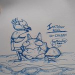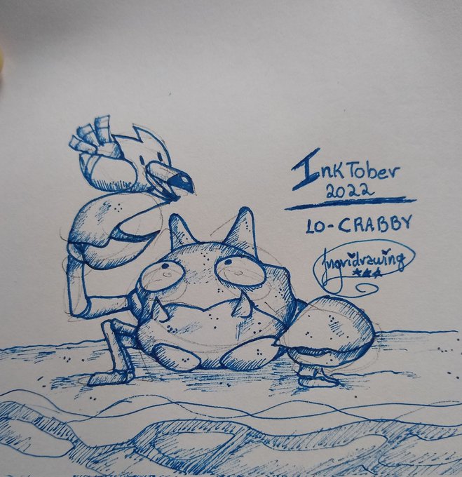 O tema de hoje foi crabby, traduzindo seria mal humorado, ranzinza ou caranguejo/siri, então eu fui pelo que eu tinha mais capacidade de fazer e fiz o krabby com um wingull nas suas garras. #inktober2022 #Inktober #inktober2022day10 #inktober2022crabby #inktober2022day10crabby