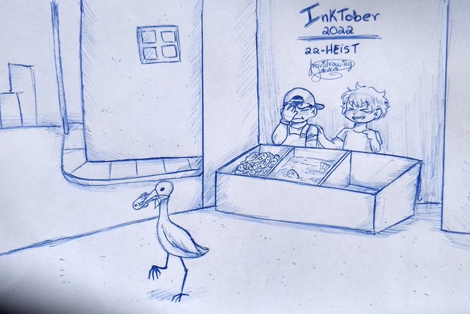O tema de hoje foi roubo, então diz uma ave (uma garça?) Roubando um peixe da peixaria. #inktober2022 #inktober #inktoberchallenge #inktober2022day22 #inktober2022day22heist #inktober2022heist #inktoberday22 #inktoberday22heist #inktoberheist