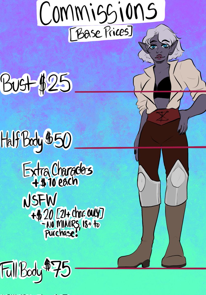 Hi! I haven't posted on here in a while! Instagram: moondrop_arcana Tumblr: moondrops-and-ink Message me on those platforms if you are interested in a commission! I have 4 slots open for commissions And 3 slots for icons! #criticalrolefanart#artists#commissions