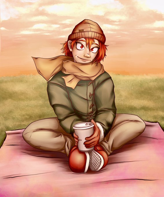 #EIJIROCTOBER2022 Day 24: Autumn // The little Things Cuz he's just a little guy on a fall afternoon, with his little cup of hot chocolate #kirishima #MyHeroAcademia #mha #bnha #inktober2022 #inktober2022day24 #fall