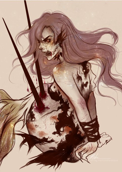 Another piece for #mermay that I finished while eating on my lunch break rip. A quite battle-worn koi lady, perhaps? #mermay2018 #mermaychallenge #clipstudiopaint #digitalart #ipadpro #manga #horror