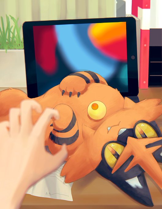 #ポケモン #ポケモンイラスト ぬしは ニャヒートに メロメロで かだいを ほうりだした!
