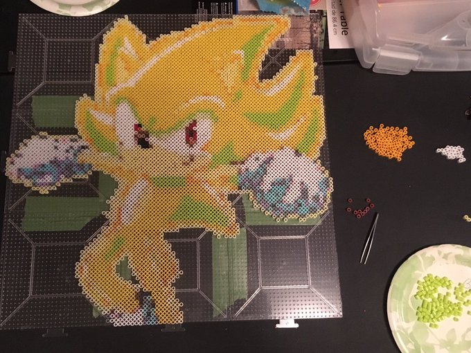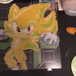 #SuperSonic is almost done! ❤️❤️❤️ #Sega #sonicthehedgehog #Sonic #PixelArt #perlers #perlerbeads