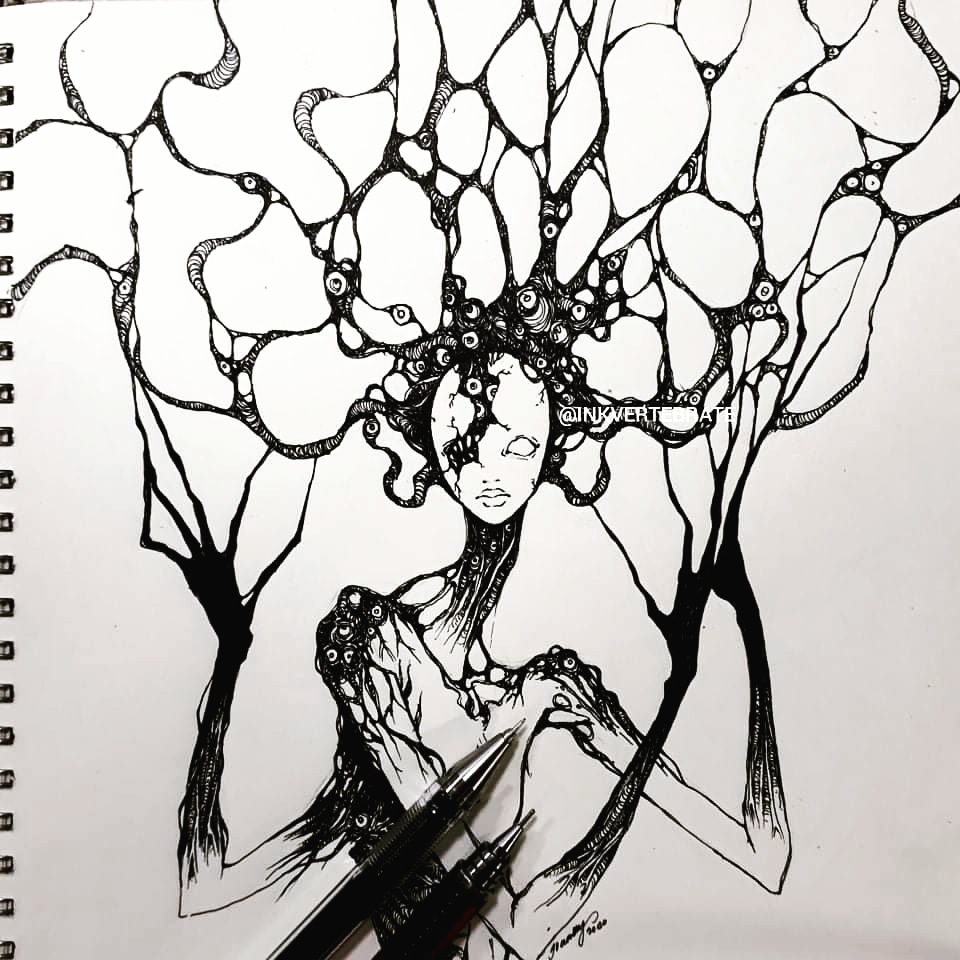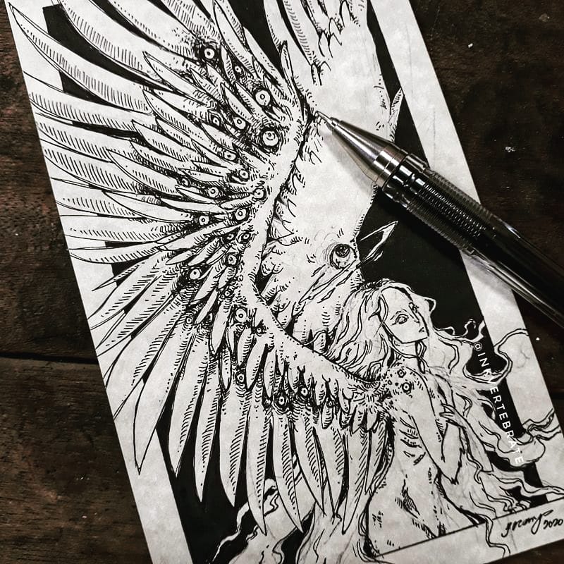 Nyla, the Pretender. When she flies against the night sky, the eyes in her skin blink like stars. #smaugust #smaugust2020