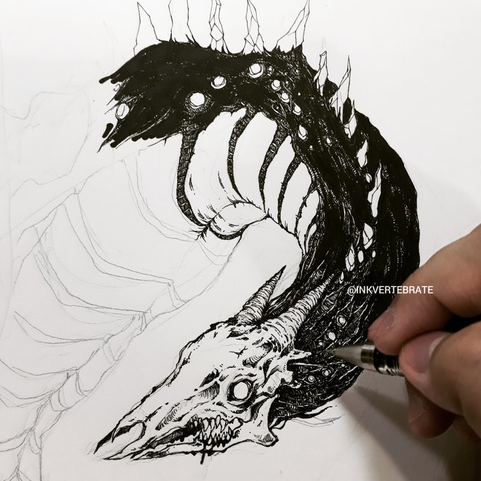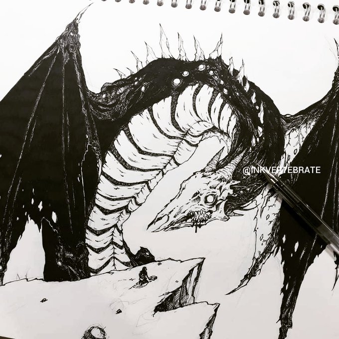 Staring at death in it's not-eyes. The dragon wanders the canyons west of these plains. Taller than the tallest spires we have ever built, it's wing's twice as wide and it's breath a dark fog of ash. -Yorek, a dweller of the ash-flats #smaugust #smaugust2020