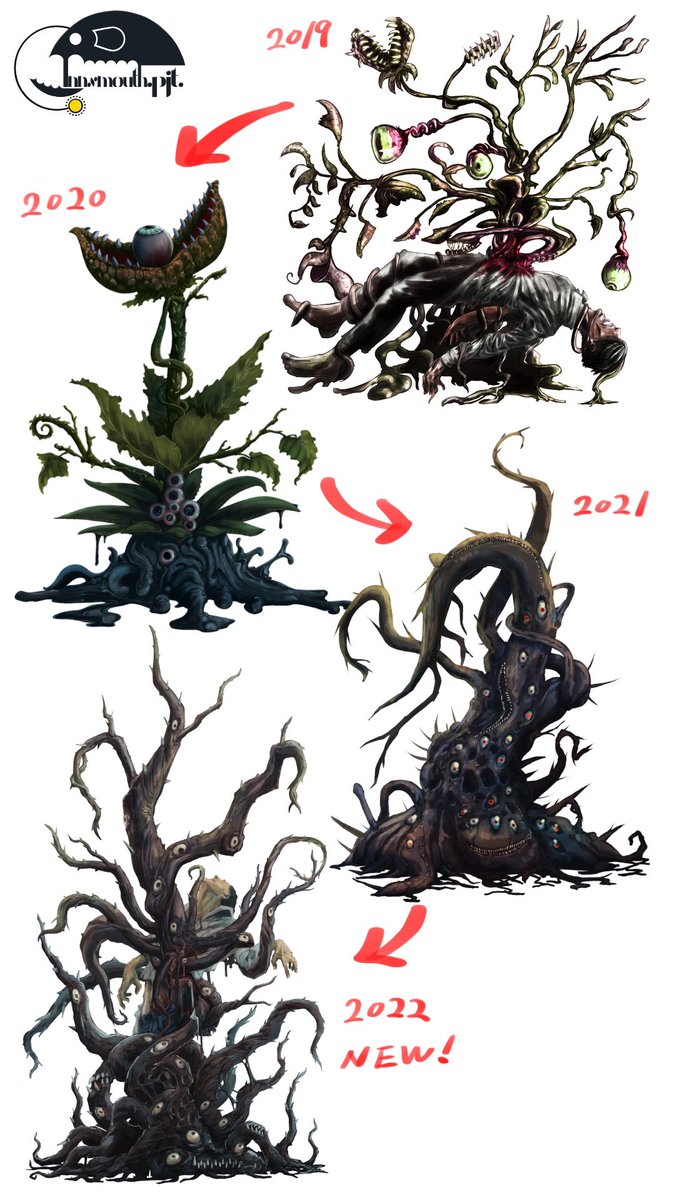黒い子山羊 シュブ=二グラスの眷属、黒い巨木を想像させる体には無数の口と、幹のようにうねる触手が生えている。 見上げる巨体を意識して描きました! #クトゥルフ神話TRPG #神話生物素材集リメイク