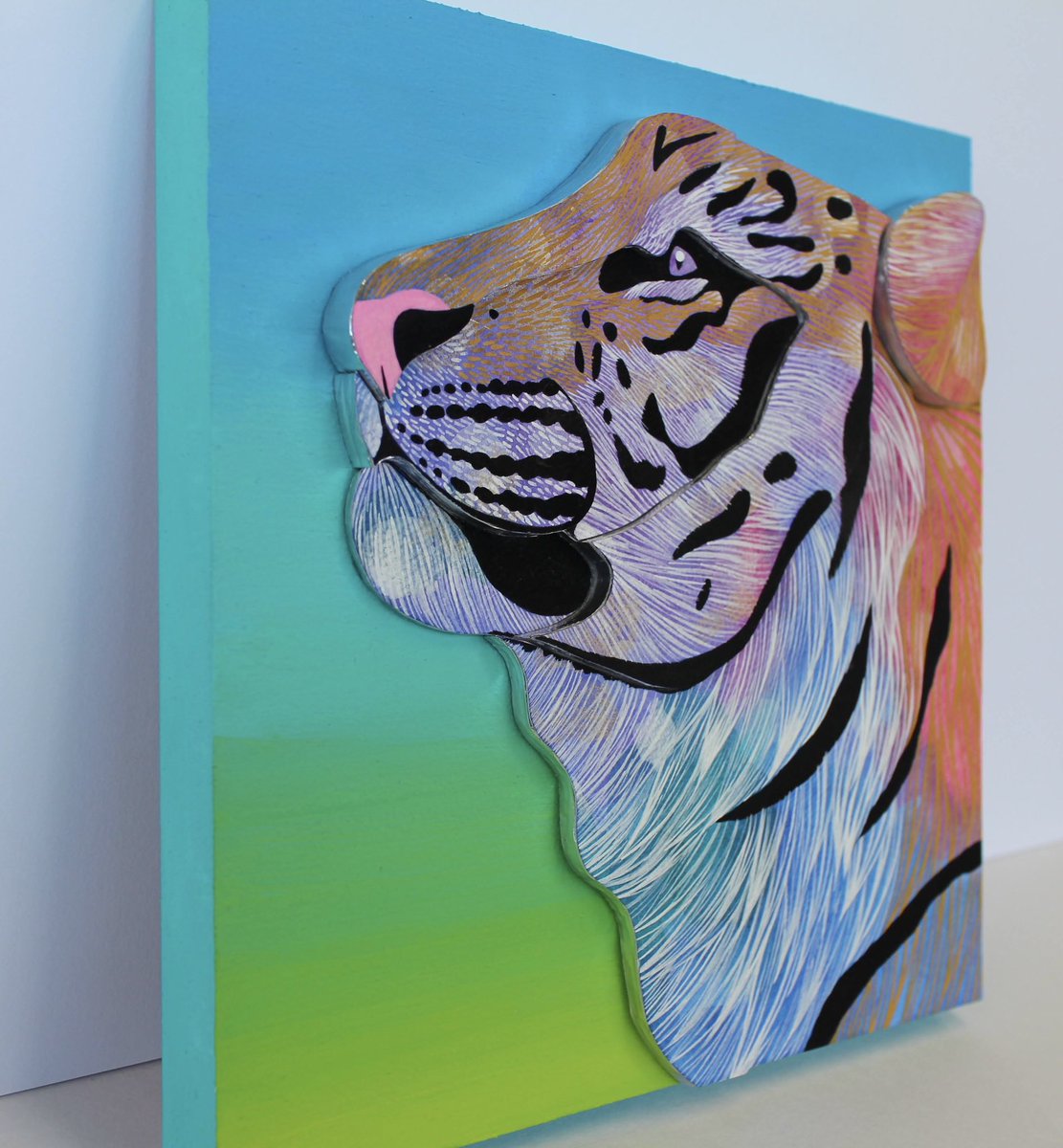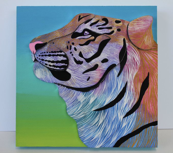個展「キプリスどうぶつ園」 ateliercypris.com/cypris-zoo 「初凪」 爽やかな風を感じるトラの横顔を描きました🐯 元日の海がないでいるという意味の初凪(ハツナギ)をタイトルにつけました。 来年は寅年なので、新たな1年の幕開けの準備としても相応しい作品です。 #いい色の日