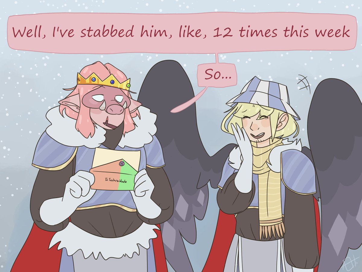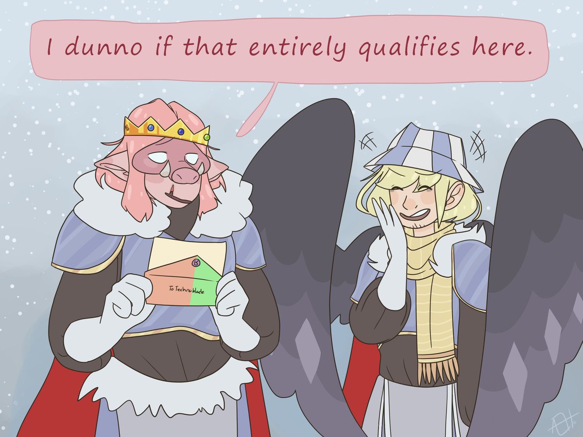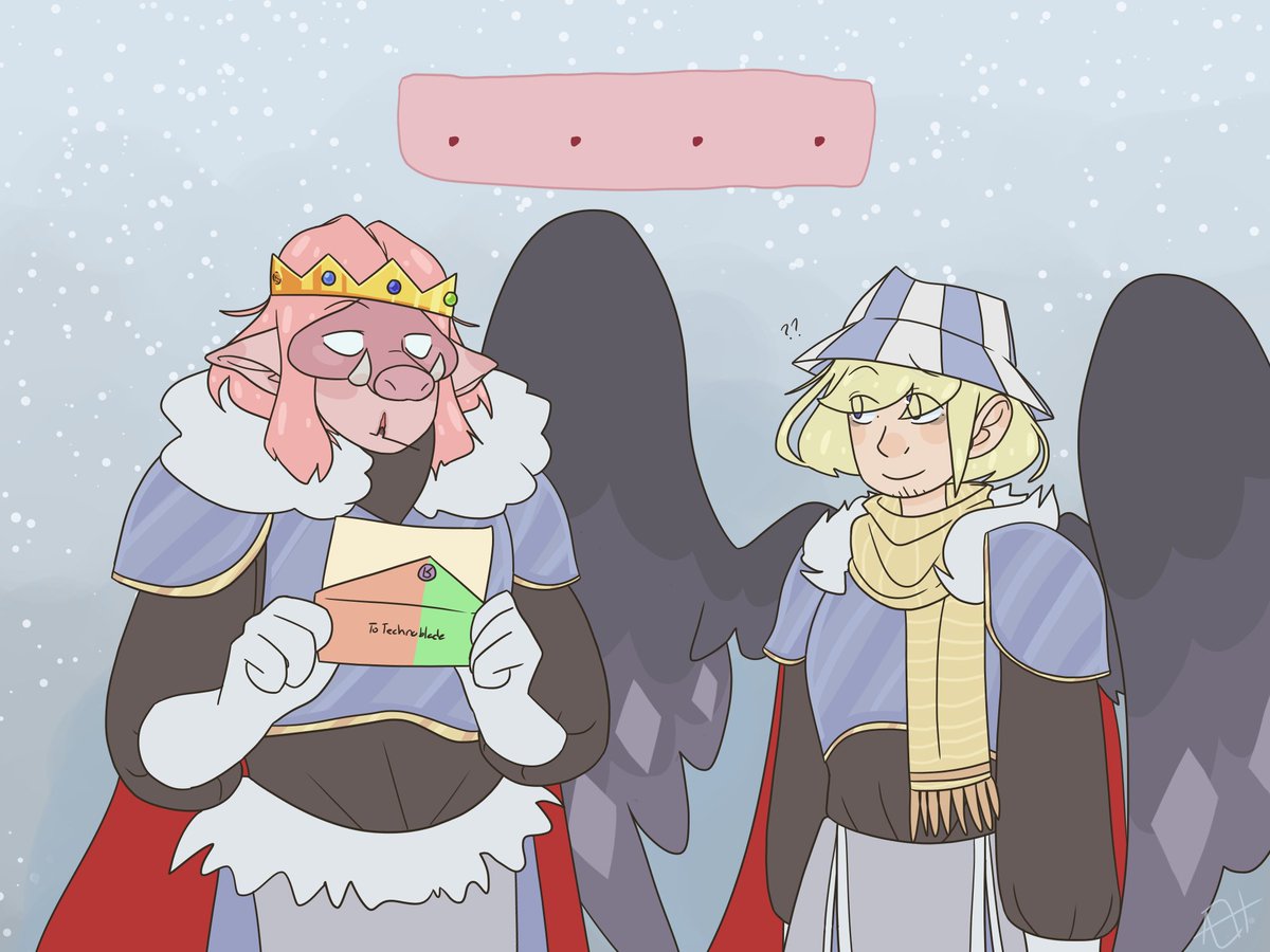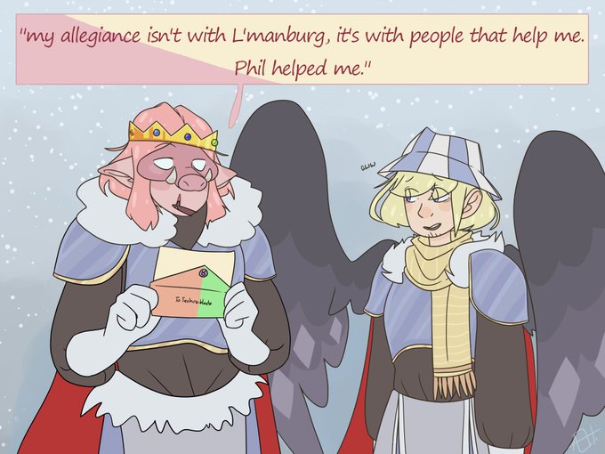 I wanted to draw this moment but couldn't figure out how to do it in one image-- so now this exists and I feel it's better that way. #dreamsmpfanart #dreamsmpexile #technobladefanart #technoblade #philzafanart #philza #antarcticempire