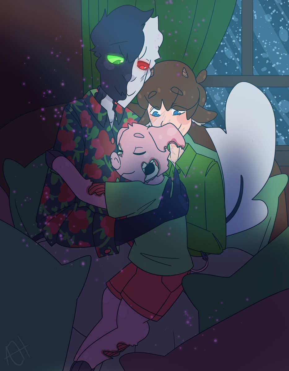 I wanted to draw the fact Ranboo's tears sorta sizzle a bit due to enderman so. But I felt bad, so he gets a Dadza hug. #ranboofanart #philzaminecraftfanart #dreamsmpfanart #enderman