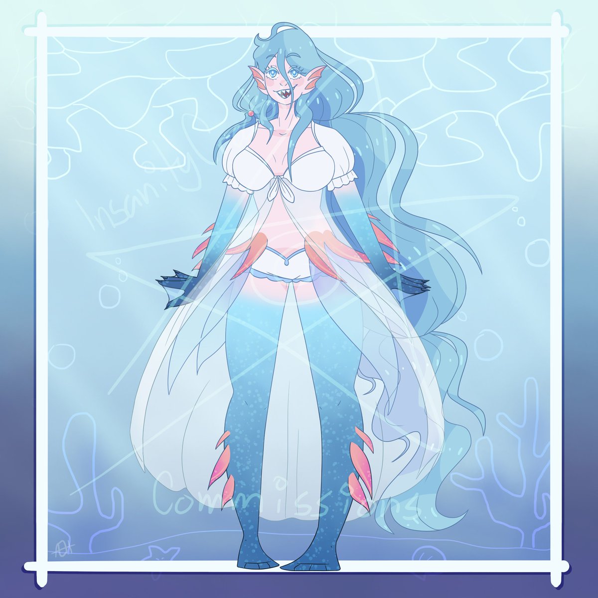 Commission for my sister!! It’s her D&D character named Mimi! A bimbo mermaid who works for a mob of other bimbo mermaids, perfection. You can’t get a better character concept than that. #digitalart #commissionsopen #mermaid #mermay #dndart #DnDcharacter