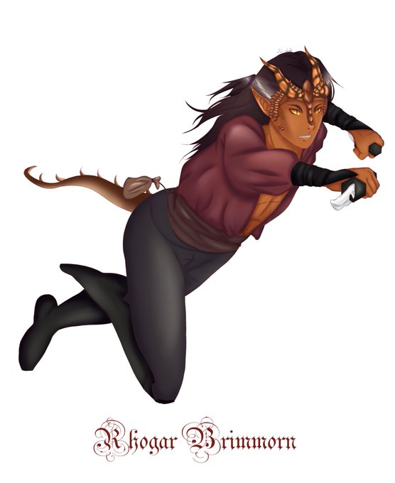 I drew my friends DND characters from our first ever campaign! My Dragonborn/Tiefling rogue 😊 His name is Rhogar #dnd5e #dnd #ttrpg #dungeonsanddragons #dndart #DnDcharacter #ArtistOnTwitter