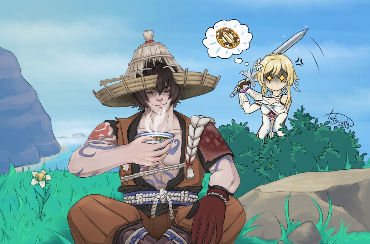 Одна тут отдыхаешь? 😏 (Перезалив, потому что с этим описанием веселее смотрится) Just some Inazuma bad guys without their hats. They deserve some fanart too ^^ #genshinimpactfanart #genshinimpact