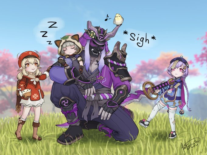Присматривать за детишками дело нелёгкое. Особенно за этими 😹 #原神 #GenshinImpact #genshinimpactfanart #Klee #Qiqi #Sayu