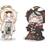 「いろは、何作ってるんだ!?」 「んー?完成するまでのお楽しみでござるよ」 #いろはにも絵を #laplus_artdesu