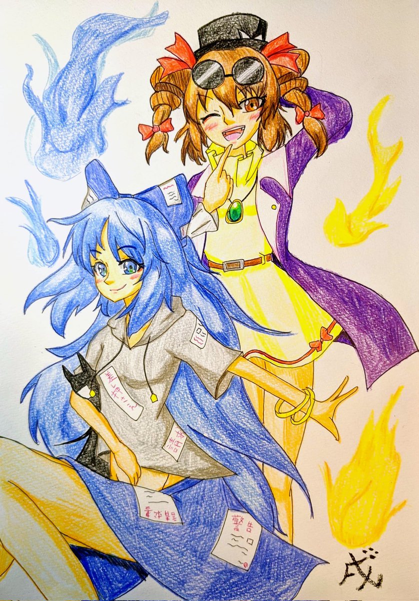 依神姉妹を描いてみました。 かなり久しぶりのお絵描きです。