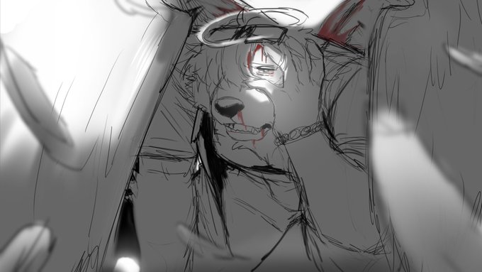 801 5748 "Would you like Bacon and Eggs?" Asked the White hound. "WH-WHERE AM I?!" Aki responded. for @VoidHound_ 23/05/07 23:13