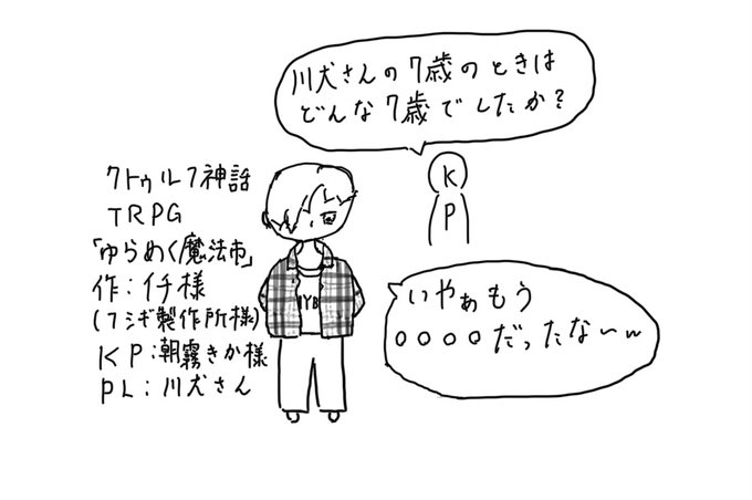 今日は川犬さんPLの「ゆらめく魔法市」を描きました〜 今回は川犬さんの着てる服を探索者に似せました! ○の中の内容は配信の中にあります!すぐ見つかります! ゆらめく魔法市↓ 作者→イチ様(フシギ製作所様) KP→朝霧きか様 PL→川犬さん #第一印象描いてみた #川犬アート #ゆらめく黒幕