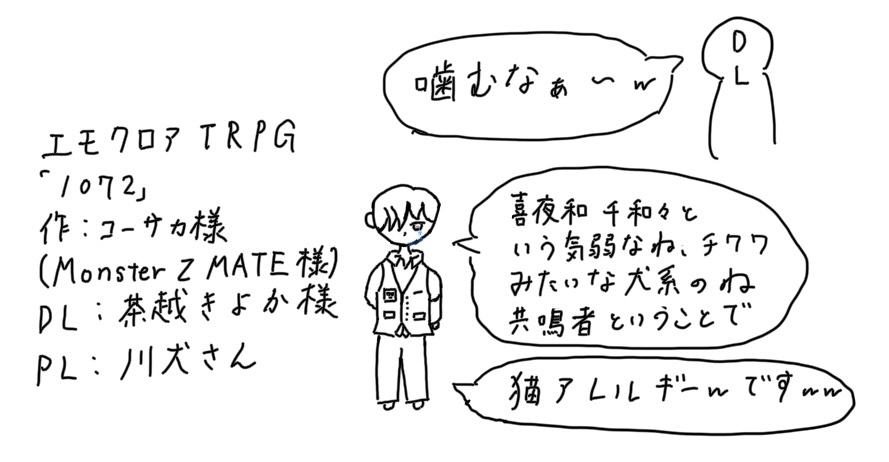今日は川犬さんPLの「WANNABE」を描きました〜 今回はイチ様のアイコンも描かせていただきました! 字が汚いです… 川犬さんのもわもわの内容は僕が考えただけなので、本人は関係ないです。 WANNABE↓ 作者・DL→イチ様 (フシギ製作所様) PL→川犬さん #第一印象描いてみた #川犬アート