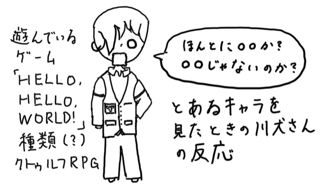 今日はなんと!川犬さんのゲーム実況「HELLO,HELLO,WORLD!」を描きました〜 ちょっと僕の体調的な面もあり、ツイートが遅れました… めちゃくちゃ体のバランス変… ○の中の内容は配信の中にあります! 結構序盤にありますよ〜(#️⃣1の9分あたりかと…) #第一印象描いてみた #川犬アート