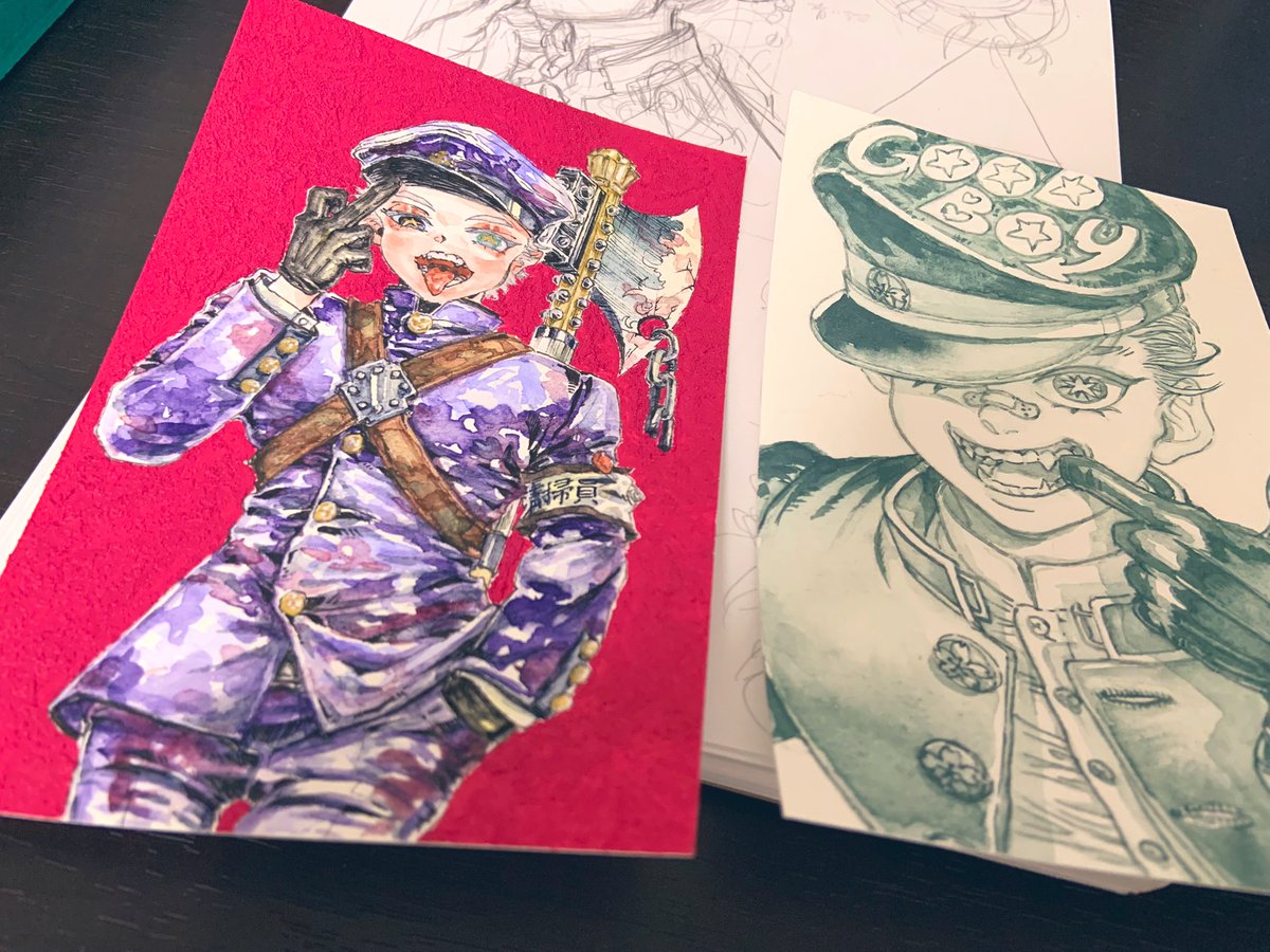 【お知らせ】 来月6月14日より開催のグループ展『學蘭ノ美學』に参加する事になりました😃 新作出したいです!頑張ります💪💕 とりあえずやんちゃな学ラン少年の過去下絵があったので何枚か塗ってみてる🎨🤔 額装かドローイングか未定ですが置いてもらう予定の子達です🥰 twitter.com/sawsinschwarze…