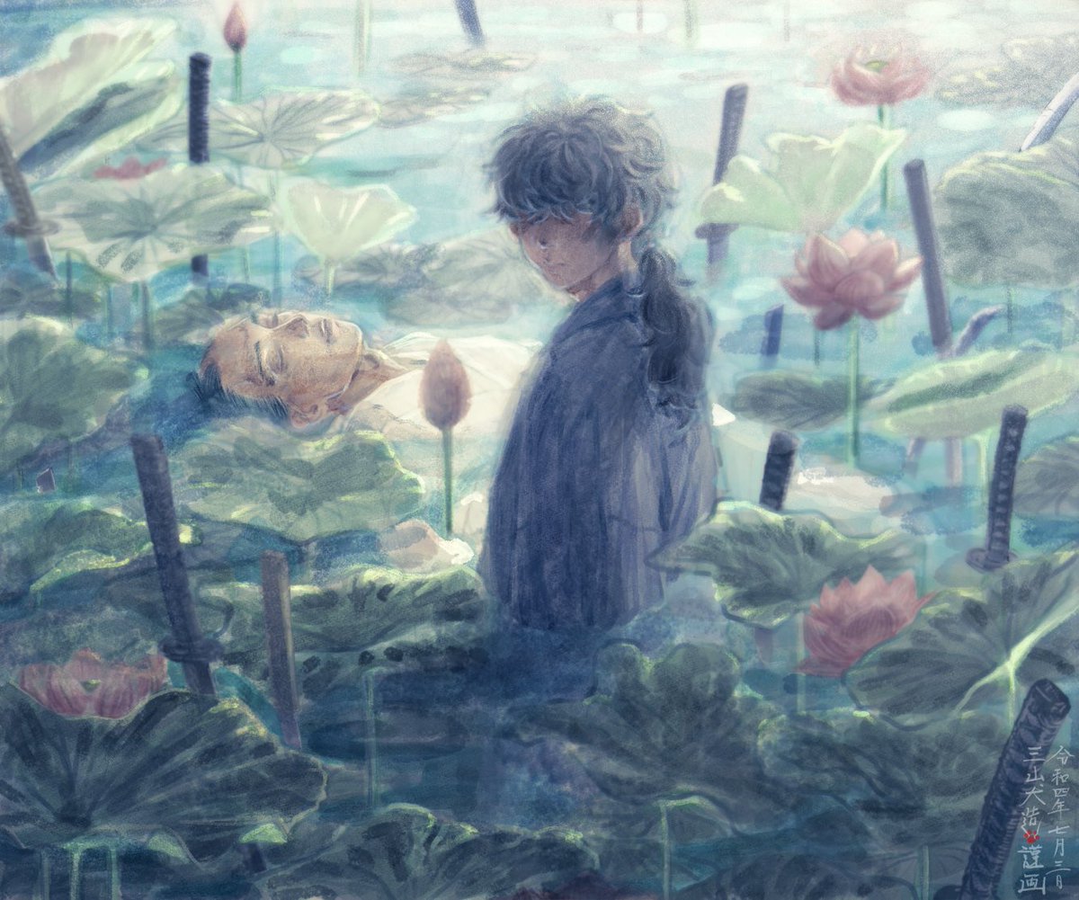 #8月になったのでフォロワーさんに自己紹介しようぜ 推しの弔い絵を描きつつ(1.2枚目)、和風レトロな創作イラスト(3.4枚目)も描いています。 グループ展への参加やだいたい月一でBOOTHオープンしてイラストや同人誌を販売しています。気になる作品がありましたらぜひ覗いて見てください🙇♀️