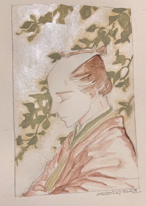 #絵柄が好みっていう人にフォローされたい #初夏の創作クラスタフォロー祭り #絵描きさんと繫がりたい 歴史創作して物想いに耽ったり、創作イラストを描いて販売しています🥳 和風多め。水彩や顔彩を使って描きます🖌