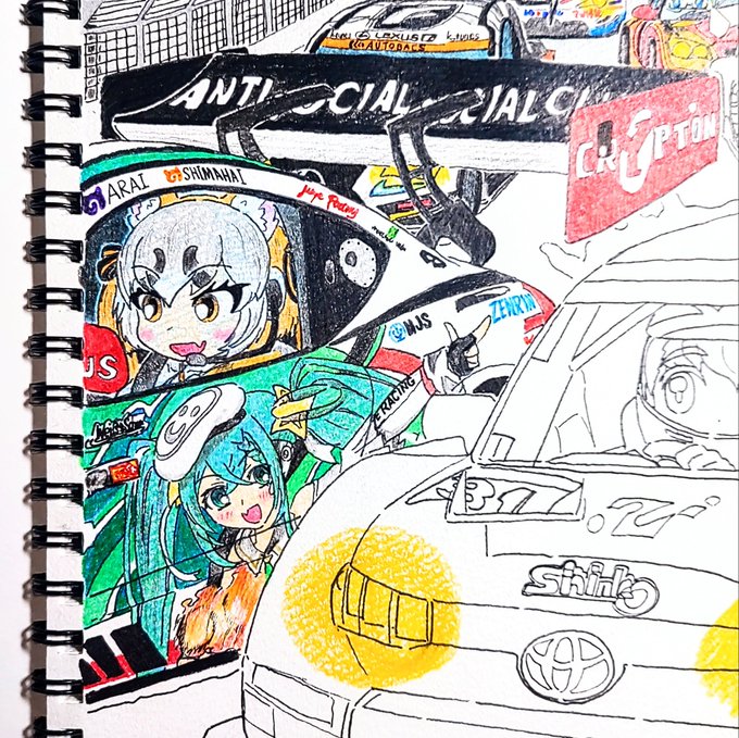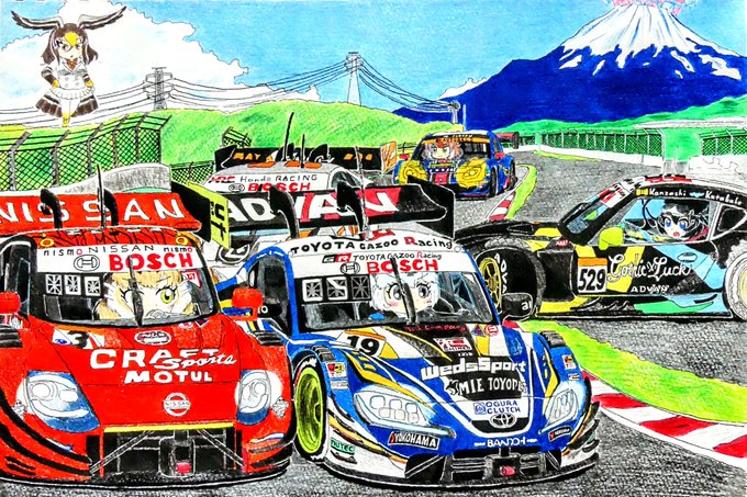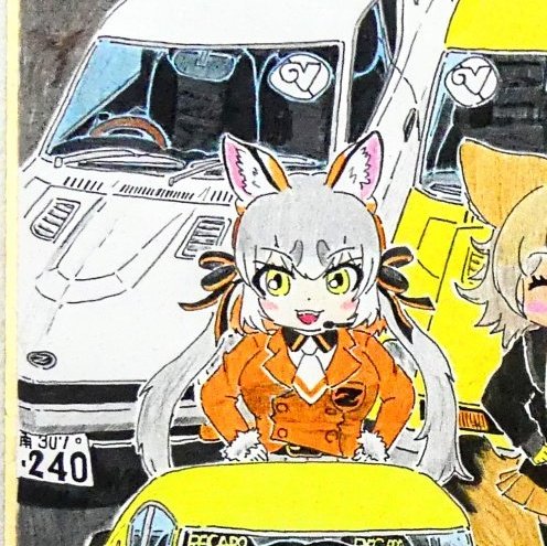 #今月描いた絵を晒そう ヒカリちゃんとZの共演⬛🟨、 けもフレ×SUPER GT 第1作目!!