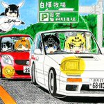8月17日木曜日、おはようございます!!⛰️☀ のんほい×けもフレコラボが本日から開催されることに因み、、、サーバルちゃん(EX4)&ツチブタちゃんを、トヨタ 歴代『86』と一緒に描きました🚗🚗🚗三三 #けものフレンズ #けもフレ3 / #のんほいパーク